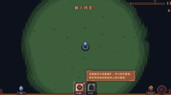 进入到游戏中,我们首先需要建造采集器,来采集晶矿。