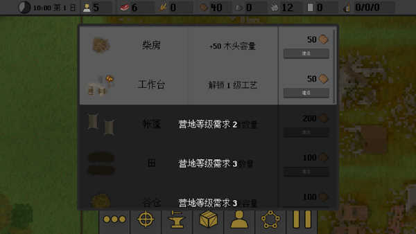 玩家可在空地上建造柴房、工作台等建筑,而且随着营地等级提升,可建造的建筑也会越多;