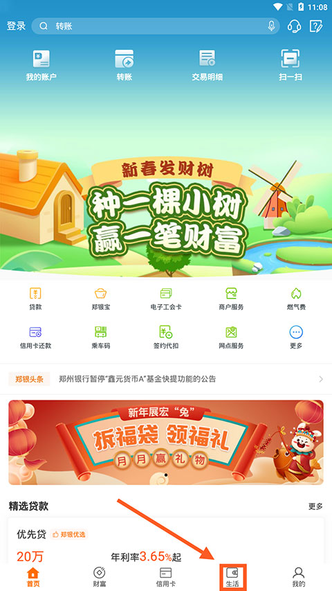 登录以后,点击下面的生活按钮。